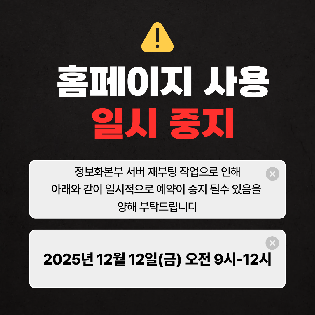 [알림] 홈페이지 사용 일시 중지 (2025년 12월 12일 9-12시)