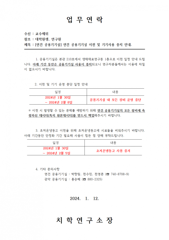 [연건 공용기기실] 연건 공용기기실 이전 및 기기사용 중지 안내