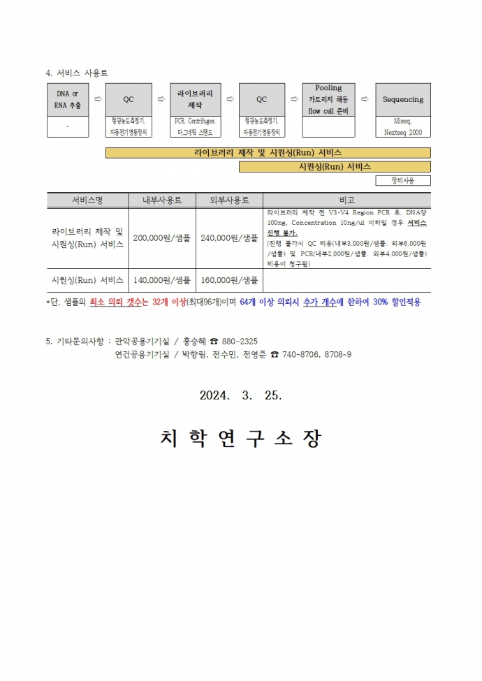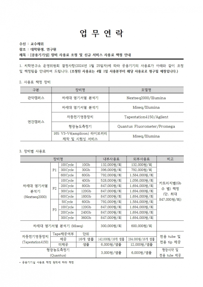 [업무연락] 장비 사용료 조정 및 신규 서비스 사용료 책정 안내