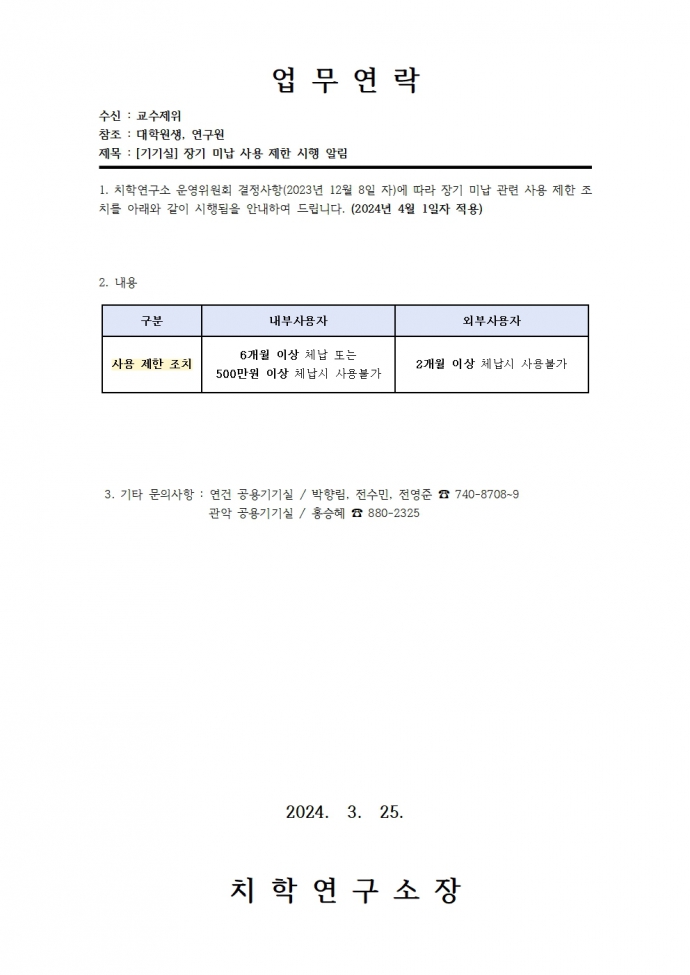 [업무연락] 장기 미납 사용 제한 시행 알림