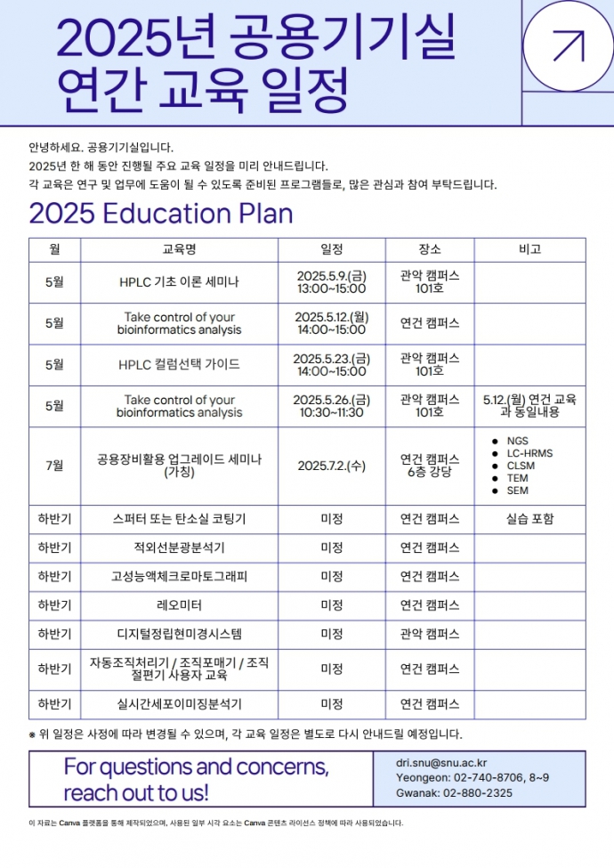 2025년 공용기기실 연간 교육 일정