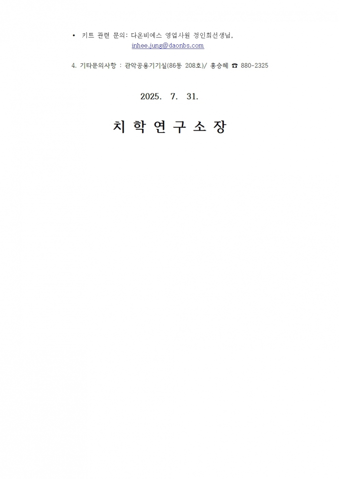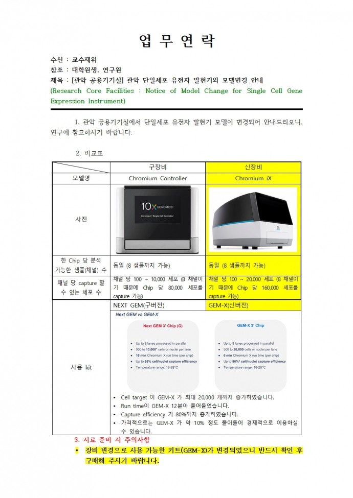 [업무연락] 관악 단일세포 유전자 발현기의 모델변경 안내