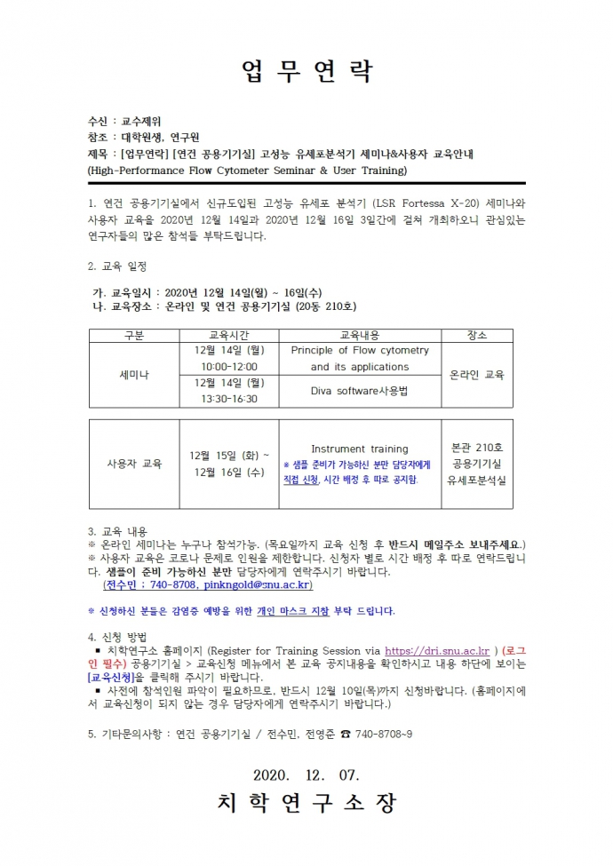 [연건] 고성능 유세포분석기 세미나 및 사용자교육