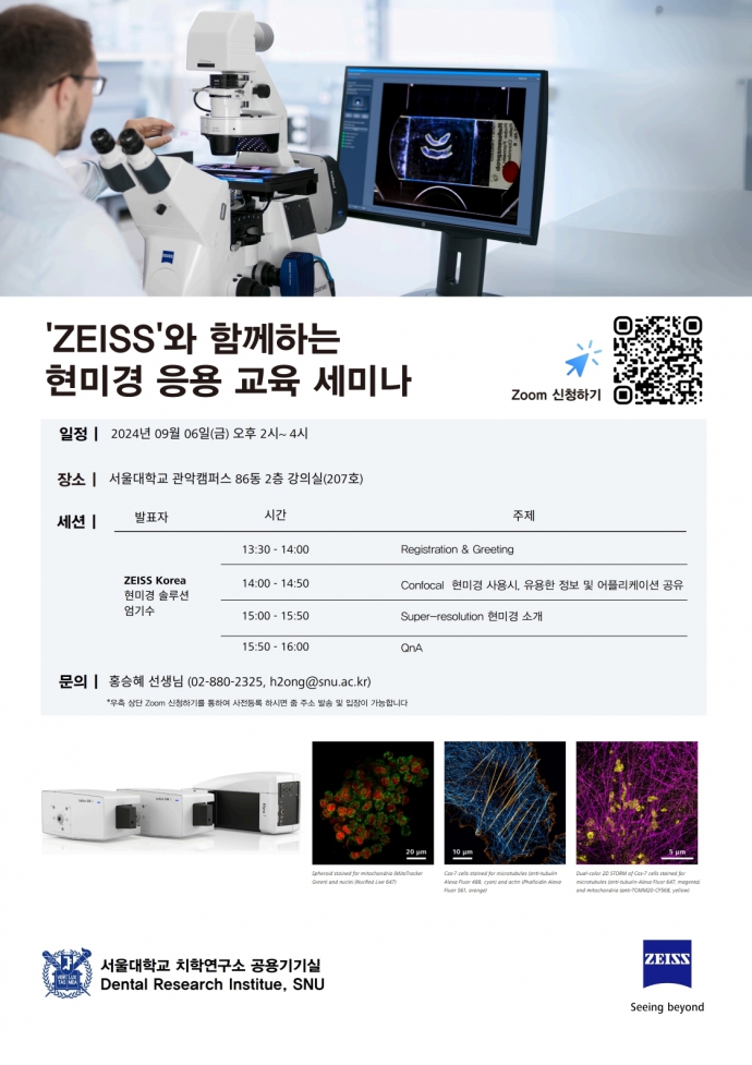 제목 : [관악 공용기기실] 'ZEISS'와 함께하는 현미경 응용 솔루션 세미나 안내