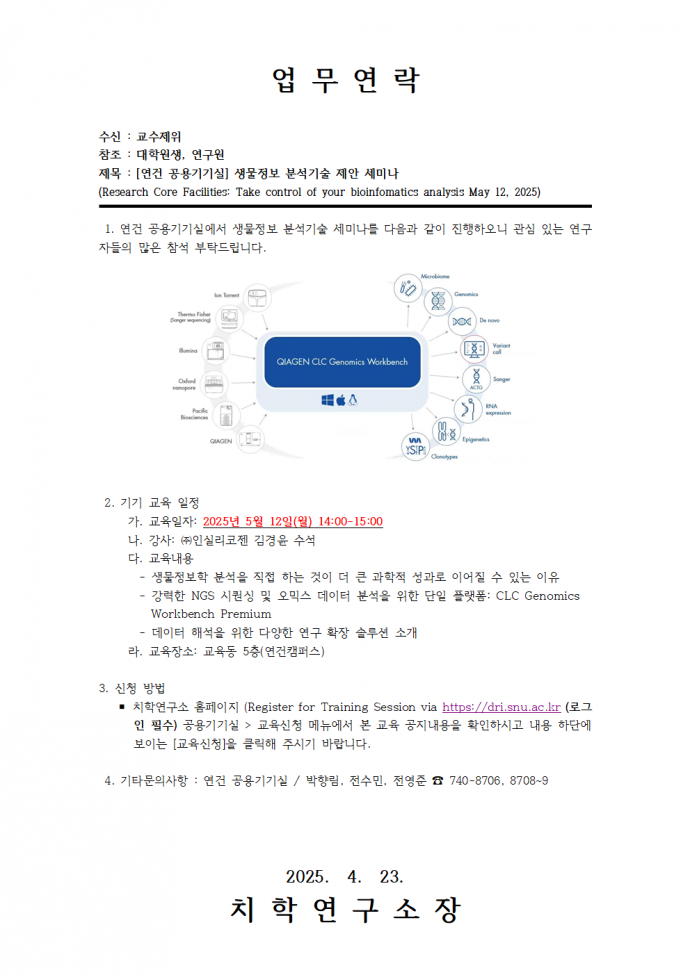 [연건] 생물정보 분석기술 제안 세미나