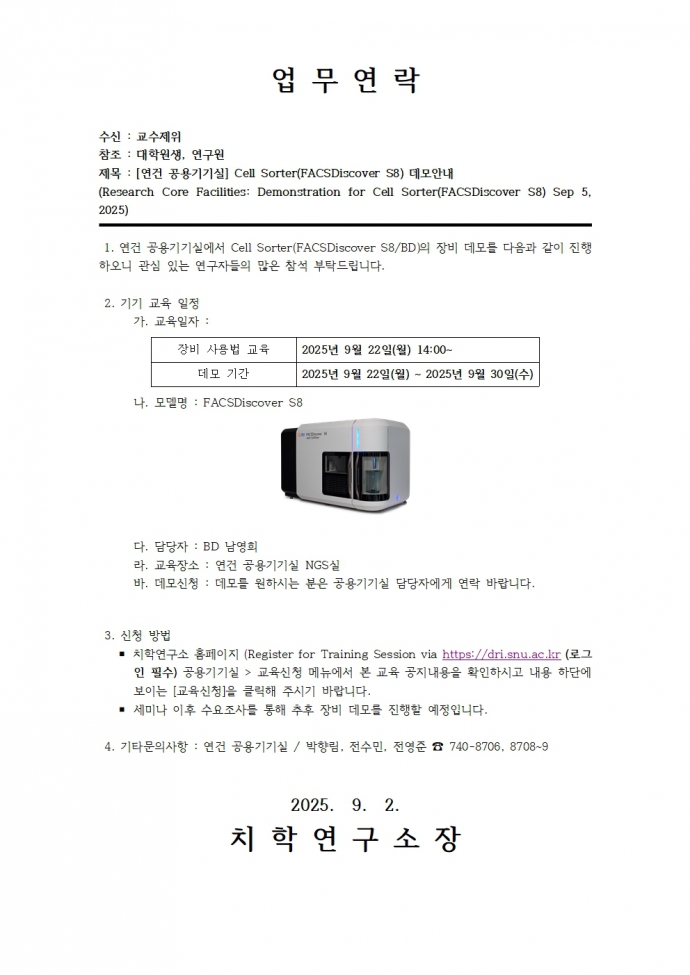 [연건] Cell Sorter(FACSDiscover S8) 데모