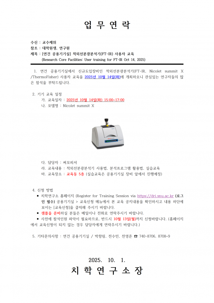 [연건 공용기기실] 적외선분광분석기(FT-IR) 사용자 교육