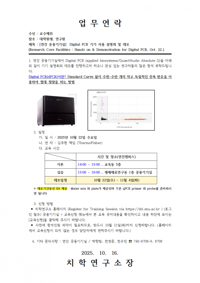 [연건] Digital PCR 기기 사용 설명회 및 데모