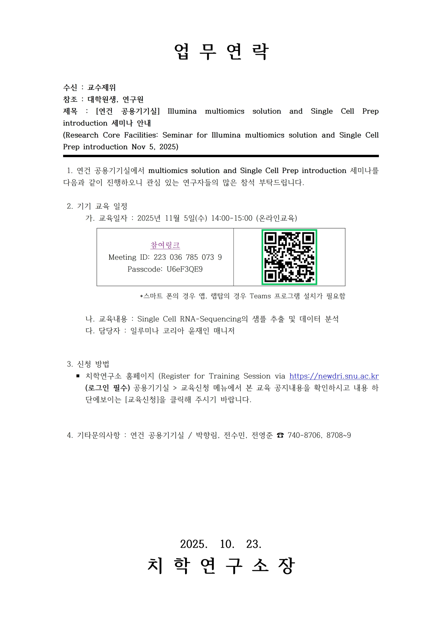 [연건] Illumina multiomics solution and Single cell prep introduction 세미나 안내
