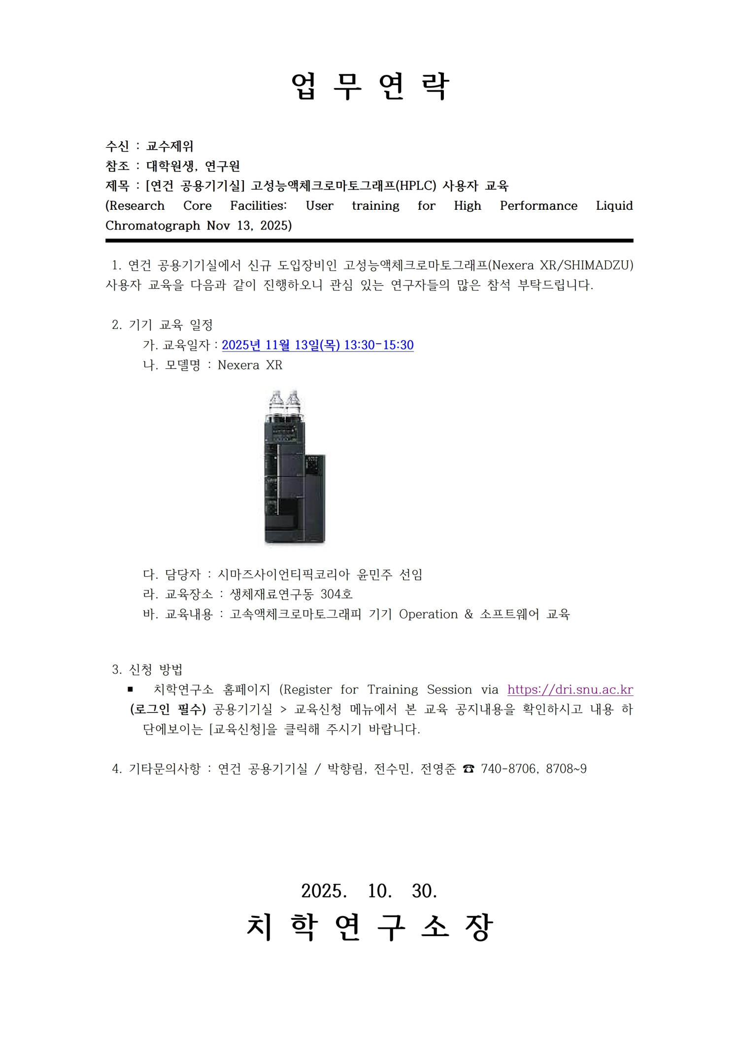 [연건] 고성능액체크로마토그래프(HPLC) 사용자 교육