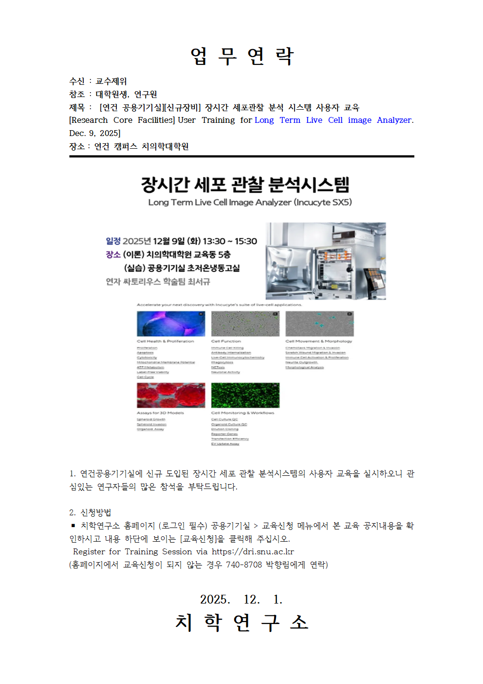 [연건][신규장비] 장시간세포관찰분석시스템 사용자교육